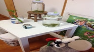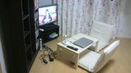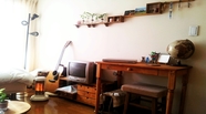 ごはんをたべて、ごろごろする部屋。 こたつに入って、ローソファーでごろごろしつつ本を読むのが至福のひとときです。