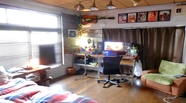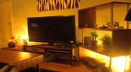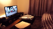 ごはんをたべて、ごろごろする部屋。 こたつに入って、ローソファーでごろごろしつつ本を読むのが至福のひとときです。
